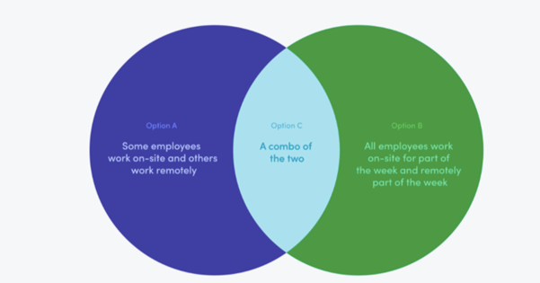 Coming “back to work” is vital for business functions where office time is needed. An example would be those essential operational functions where employees must work with systems only accessible within the office or where physical documents need to be accessed which are not online. Manufacturing is another area where a version of hybrid working is essential as employees need to be in the factories to make the products. In this case, the shift model where some employees work onsite, and others off-site would be a good solution for employers.
